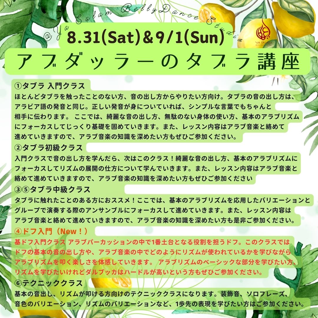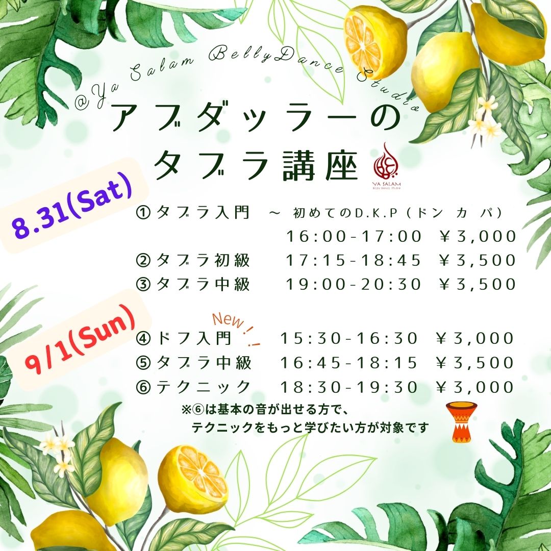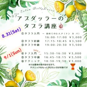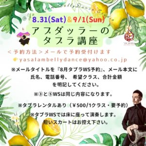 8月31から9月1日に 名古屋のYa Salam Bellydance Studioにて