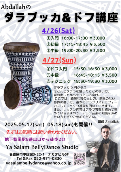 4月のダラブッカ&ドフ講座 予約受付中!