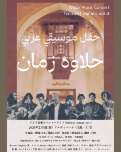 カラムさんの歌を中心に、バイオリン秦進一、ウード加藤吉樹、ドイツより一時帰国するカーヌーン増田真吾、ダルブッカ永田充、レク芹川諒、ドフ、ボンゴ他森内清敬、そして!前回は参加できなかったシリア人のチェリスト、サメル・アランくんが参加してくれます。チェロの低音の厚みが増して今回はよりパワフルな演奏になりそうです。