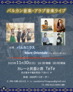 バルカニクス(バルカン音楽)& マレ オリエンターレ(アラブ音楽)のライブです☆