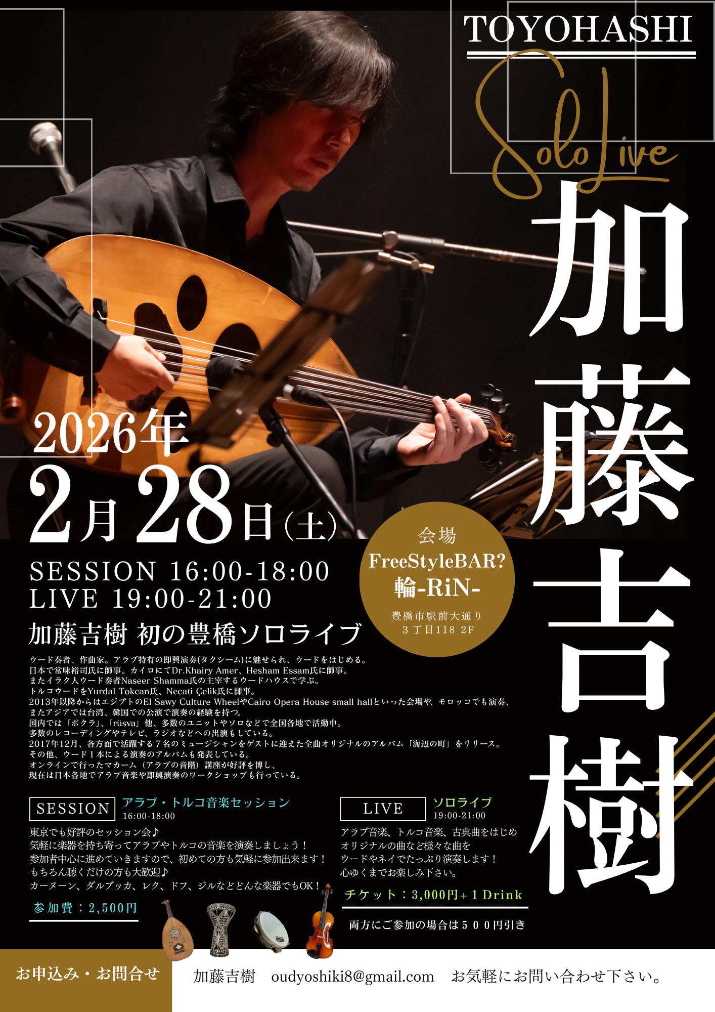 アラブとトルコ音楽のソロライブを開催